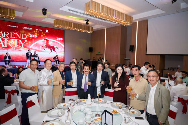 Sắc đỏ may mắn bao trùm không gian, hình ảnh chú ngựa phi nước đại trên backdrop lớn tượng trưng cho năm mới 2026 bứt phá mạnh mẽ. Hàng trăm đối tác, khách mời và cán bộ nhân viên quây quần, nâng ly chúc mừng một năm 2025 đầy nỗ lực và thành tựu, đồng thời gửi gắm kỳ vọng vào chặng đường phía trước.